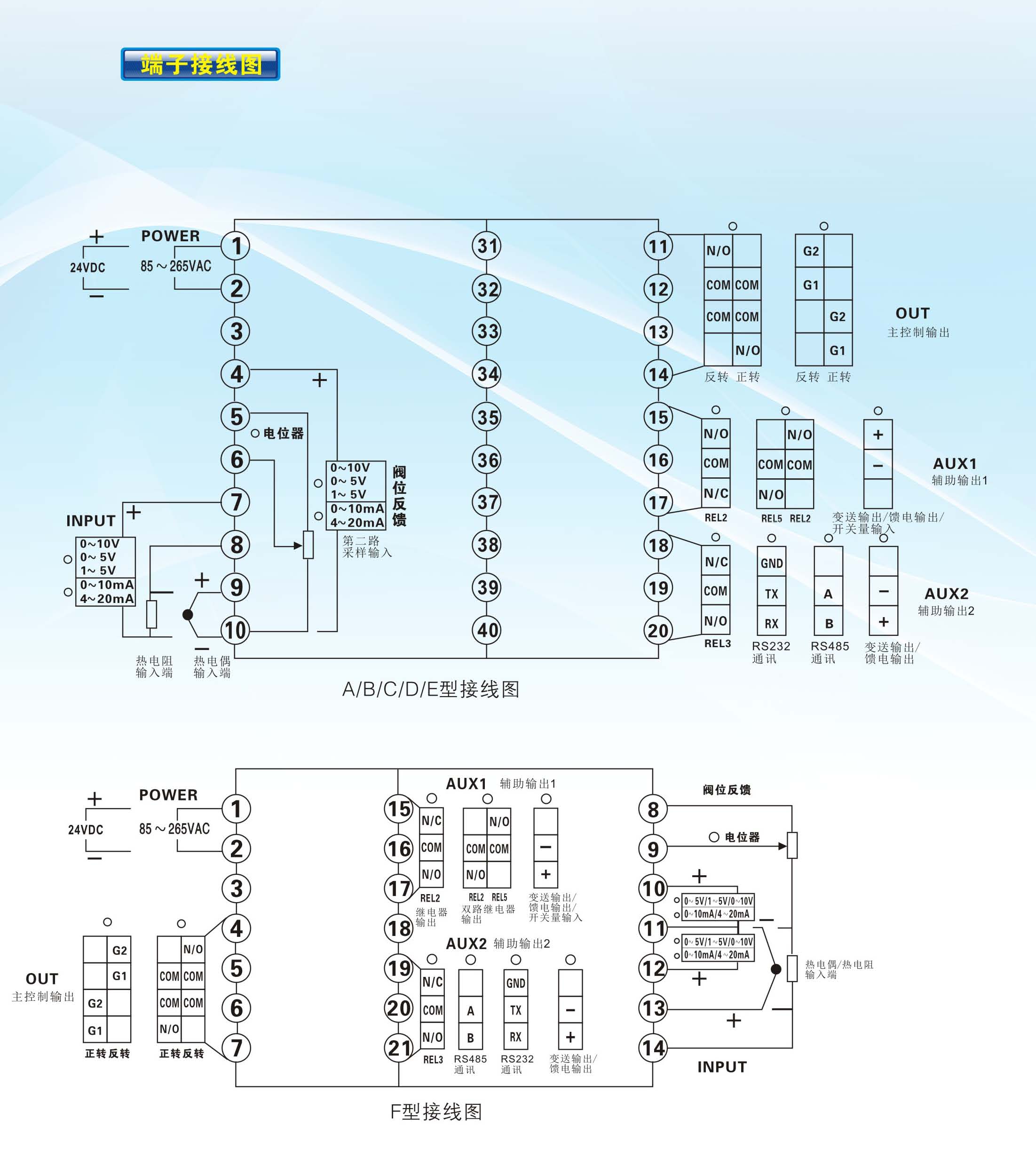 | 輸入規(guī)格:K,S,B,T,E,J,Wre325,N,Pt100,Cu50,Cu100,0-10mA,4-20mA,0-5V,1-5V | |||