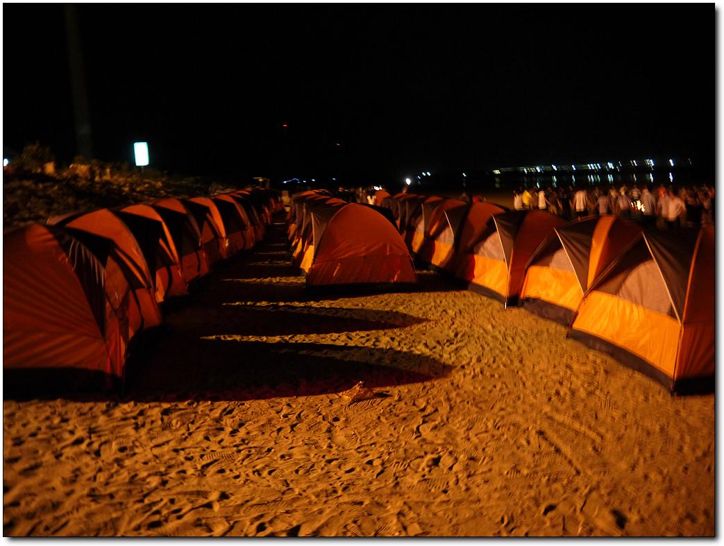 快樂的時光總是過得特別的快,轉(zhuǎn)眼間已到了23:00點了,這海灘上留下我們的足跡留下我們的歡聲笑語,但美好的記憶和愉快的心情被帶回來了,而且還將延緩著。23:00點大家興高彩烈的情緒中結(jié)束了燒烤與戲水游戲,各自回到自己的帳篷,自由活動,有的開始休息養(yǎng)好精神等待明天的到來,有的幾個一塊玩牌。我靜靜躺下聽著窗外的徐徐的海風聲。這時,感覺很疲倦的作用下,我開始有了困意,最先鉆進帳篷休息了,在帳篷里,聽著他們調(diào)侃著,也跟著竊笑,打開手機上網(wǎng)和在線的群友聊聊,大約一個小時我就下線了,我閉上雙眼,感覺真愜意啊,在海邊里,我們以天為房,以地為床,跟大地零距離的貼近著,聆聽著海水的天籟之聲,聞著泥土的芳香,遠離喧鬧的城市,在這靜靜的沙灘上,盡情的感受著大自然的氣息。這是多么令人心曠神怡的美好生活??!對于久居城市的人來說,面對現(xiàn)代生活的壓力,露營對于我們來說多具有誘惑力啊。實際上,這份頗具個性化和具有代表性的戶外活動,讓我們充分回歸自然,親近自然。