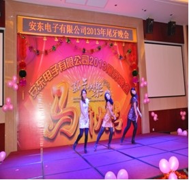 從2013年12初行政人事就已開(kāi)始計(jì)劃籌備,安排所有的流程。大至大合唱,小至各部門節(jié)目,一切都呈現(xiàn)出一片尾牙氣氛,直至尾牙,也許大家會(huì)在排練過(guò)程中相互碰撞,相互埋怨,但是始終不變的是,相互鼓勵(lì),相互幫助,一心都指向尾牙,給安東人創(chuàng)造出一臺(tái)不一樣的尾牙晚宴。